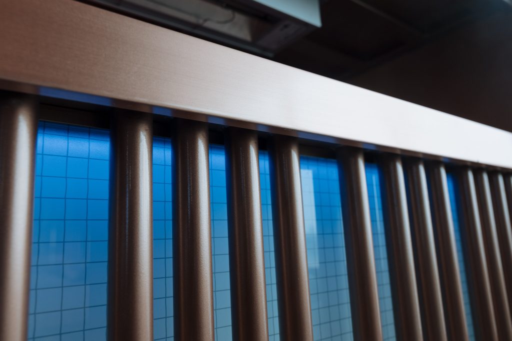 - Identidad material: El cobre, elemento protagonista, se integra en barras, revestimientos y detalles decorativos, creando un juego de reflejos cálidos que contrastan con superficies neutras de hormigón y madera oscura.