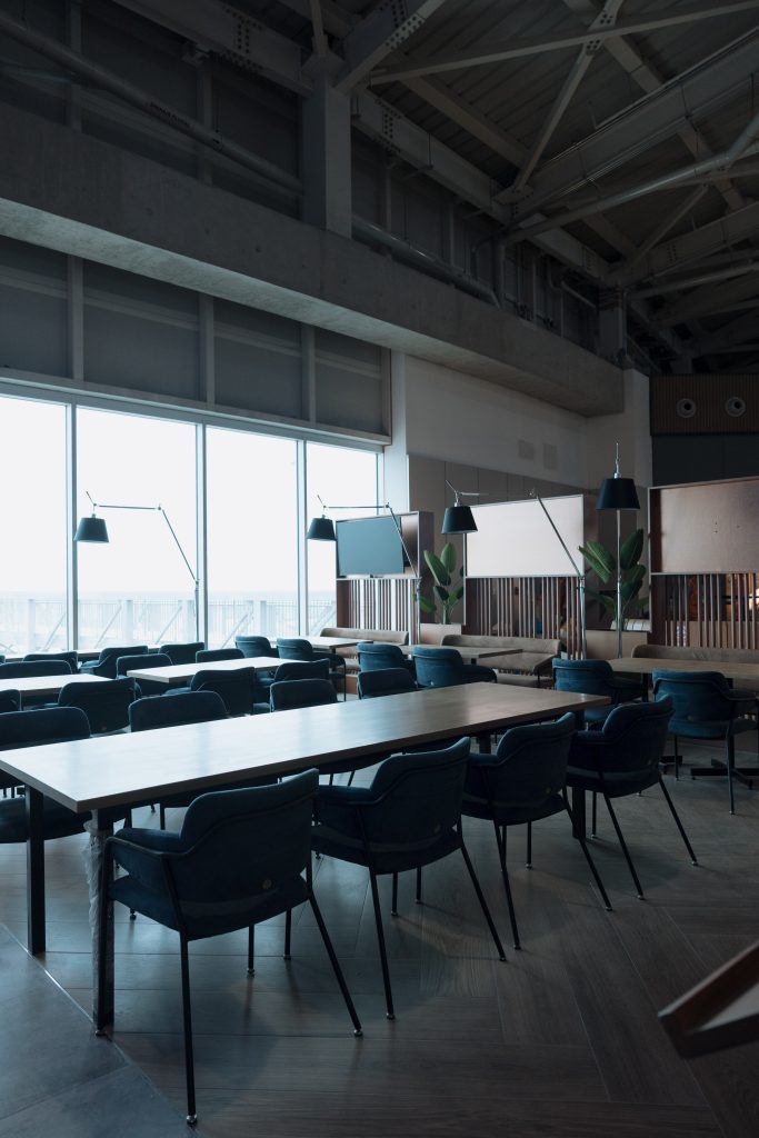 - Flexibilidad espacial: La disposición de mesas altas y bajas, junto con la barra de servicio continua, permite adaptabilidad para eventos sociales o uso cotidiano.